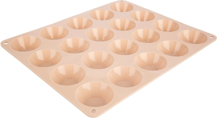 Ta bež silikonski pekač vam omogoča hitro in udobno pripravo 20 mini mafinov v enem ciklu. Kakovosten, prožen silikon poskrbi za enostavno iztretje brez potrebe po uporabi maščobe ali moke, s čimer pospeši peko in čiščenje.