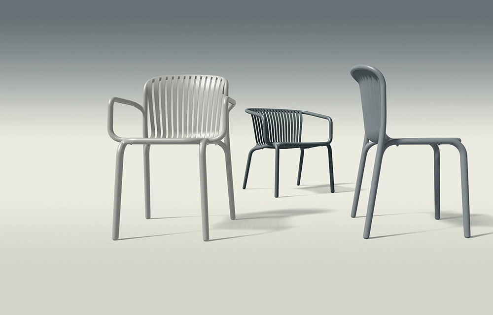 Odporen plastičen material je nezahteven za vzdrževanje in odlično prenaša zunanje razmere. Zaradi nizke teže in možnosti zlaganja sta rokovanje in shranjevanje zelo preprosta, kar cenijo gospodinjstva in lokali z večjo količino stolov.