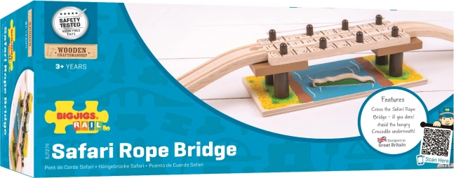 Podarite otrokom napeto safarijsko pustolovščino. Robustni viseči most z motivom reke in odstranljivim krokodilom doda vsaki leseni železnici privlačen element, ki spodbuja domišljijo ter razvija fino motoriko in koordinacijo.