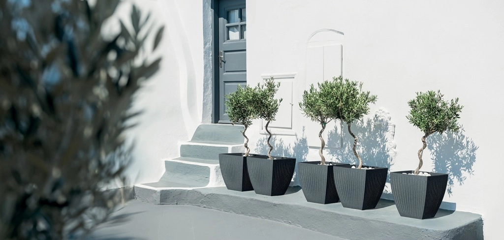 Ustvarite reprezentativen videz pri vratih, na terasi ali ob stopnicah. Dimenzije 48 × 48 × 48 cm zlahka sprejmejo grmovnice in manjša drevesa.