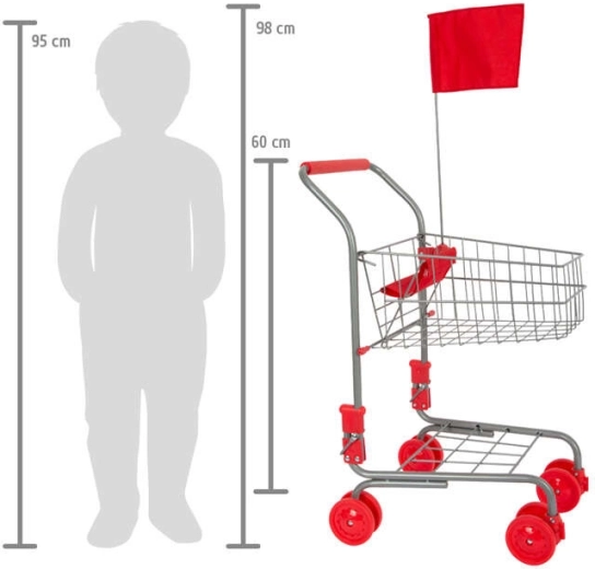Koš nudi dovolj prostora za živila, igrače in dodatke za otroško trgovino. Praktičen zložljiv sedež za punčko ali pliškota dvigne igro na še bolj realistično raven. Materialna zasnova iz kovine in trpežne plastike zagotavlja dolgo življenjsko dobo pri vsakodnevni uporabi.