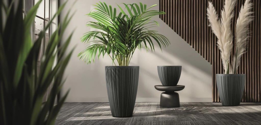 Navpično rebrasto oblikovanje in mat betonsko siva barva dodata vašim rastlinam stilni okvir ter poudarita minimalističen videz prostora.