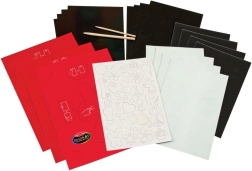 Vsak praskalni list skriva mavrične in holografske učinke, ki po praskanju ustvarijo impresivne in izrazite slike brez potrebe po barvah ali lepilih.