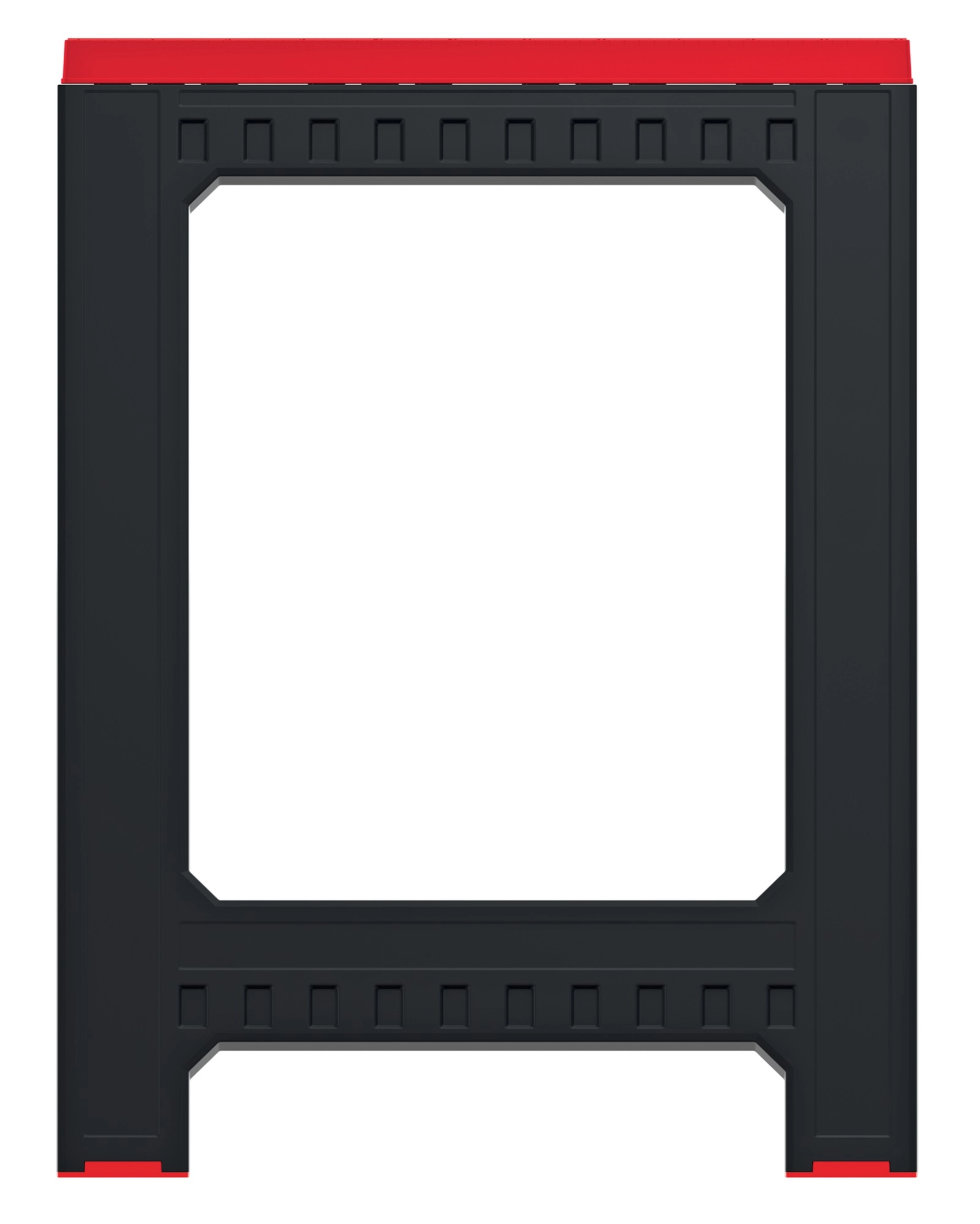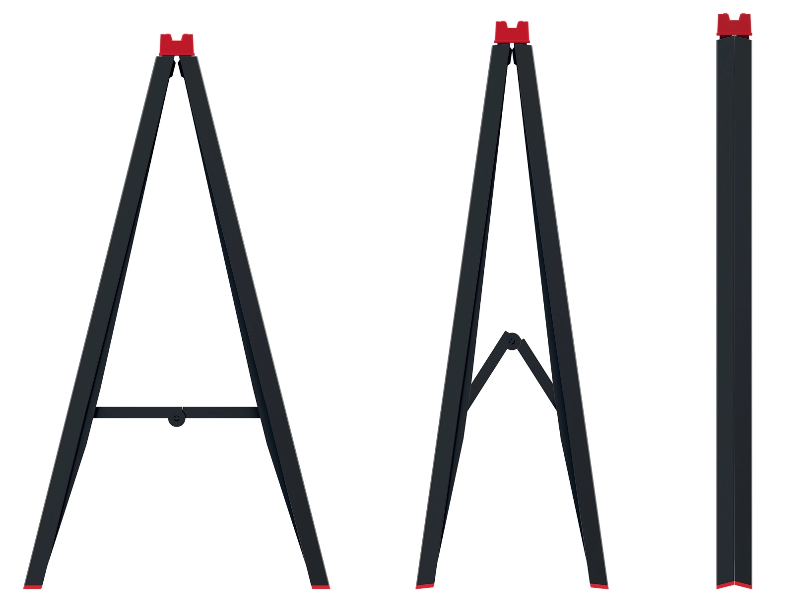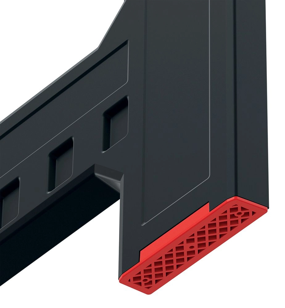 Rdeči zaključki povečujejo oprijem, ščitijo tla in izboljšujejo vidnost robov stojala za varnejše delo.