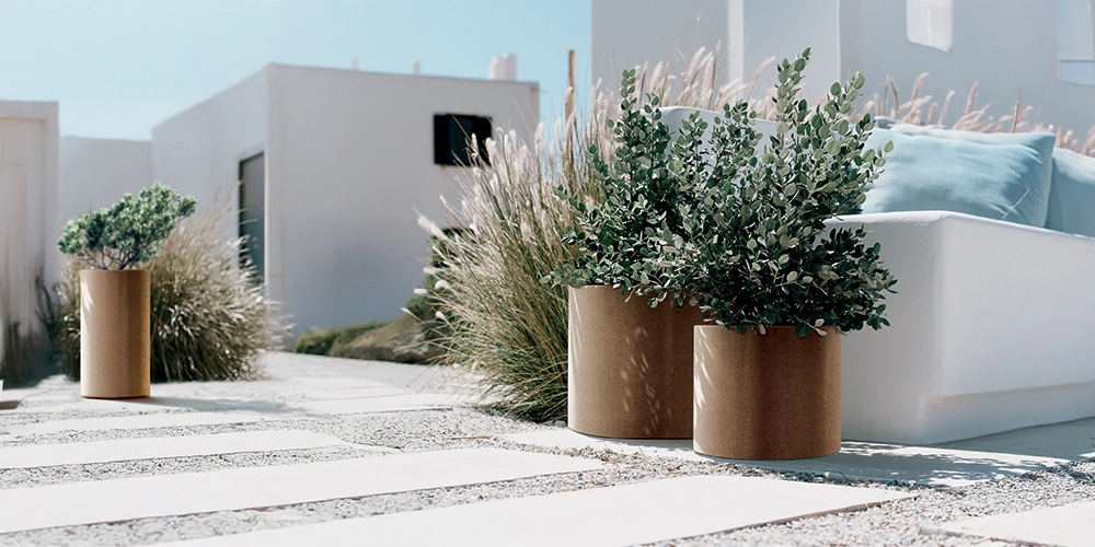 Okrogli cvetlični lonček Tubla Round v toplem rjasto rjavem odtenku prostoru doda naraven in rustikalni pridih, ki odlično poudari lepoto okrasnih in uporabnih rastlin. Združuje estetiko in praktičnost – je lahek, a stabilen, ter pripravljen za uporabo v notranjosti in na prostem.