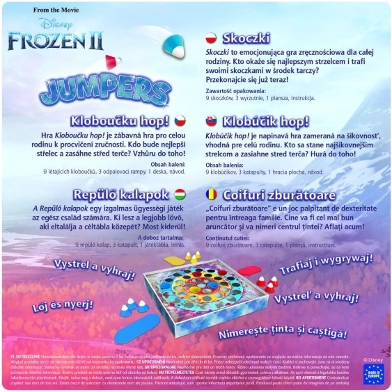 Doživite tradicionalno in zabavno družinsko igro Klobučku, hop z motivom priljubljenega animiranega filma Ledeno kraljestvo 2. Pokažite svoje spretnosti in ugotovite, kdo bo najboljši strelec!