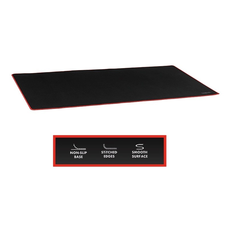 Spodnji sloj s protidrsno obdelavo ohranja podlogo trdno na mestu tudi pri dinamičnem igranju. Minimalistična črna zasnova z diskretnim logotipom se poda vsakemu setupu – od igralnega do pisarniškega.