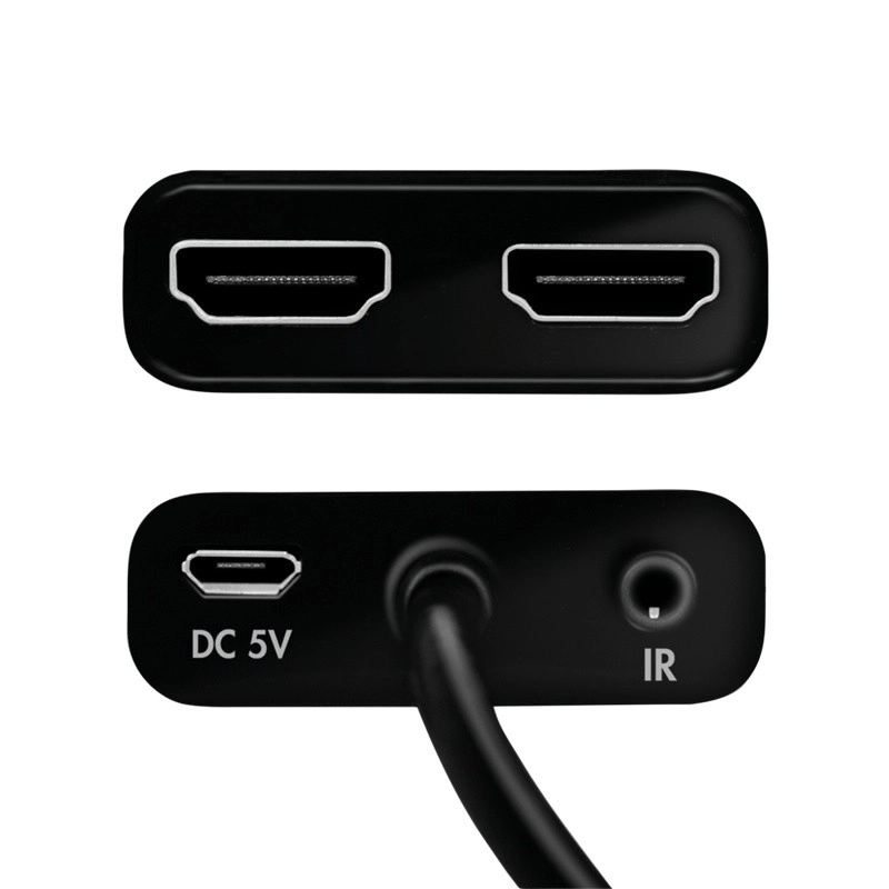 Namestitev je preprosta in hitra: priključite HDMI vir in dva zaslona ter uživajte v stabilnem prenosu brez nenehnega preklapljanja. Zahvaljujoč podpori IR upravljanja je razdelilnik in TV mogoče udobno upravljati z daljinskim upravljalnikom (odvisno od opreme).