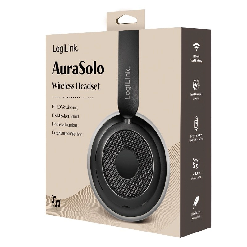 LOGILINK AuraSolo so zasnovane za vsakodnevno delo, potovanja in sprostitev. Zahvaljujoč Bluetooth 6.0 dobite zanesljivo brezžično povezavo z dosegom do 10 m, medtem ko ANC pomaga zmanjšati hrup okolice za osredotočeno poslušanje glasbe in jasne klice. Če želite varčevati z baterijo, preprosto priključite kabel prek 3,5-mm priključka.