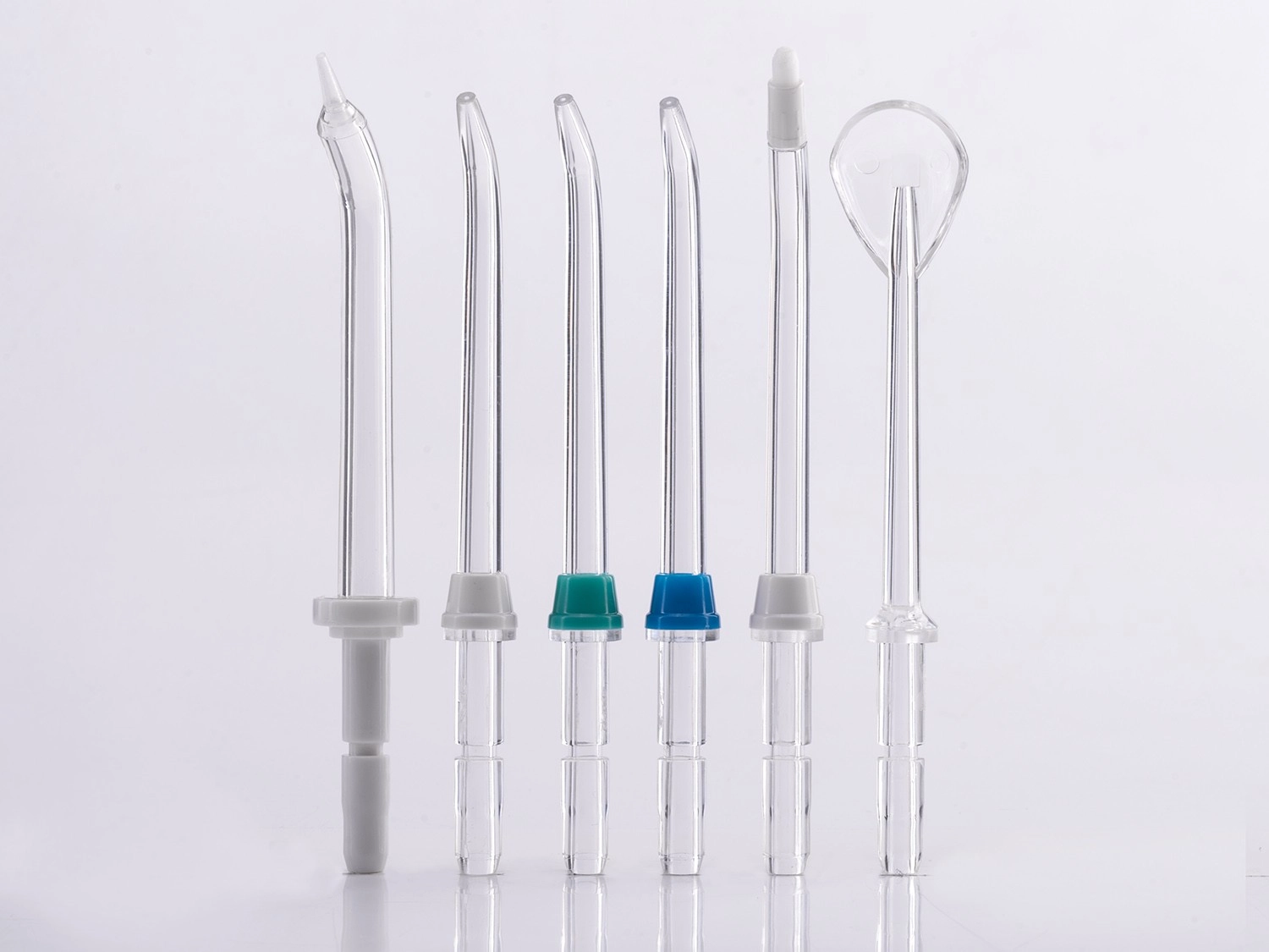 - 6 (3× standardna šoba, strgalo za jezik, parodontalni nastavek, ortodontski nastavek)