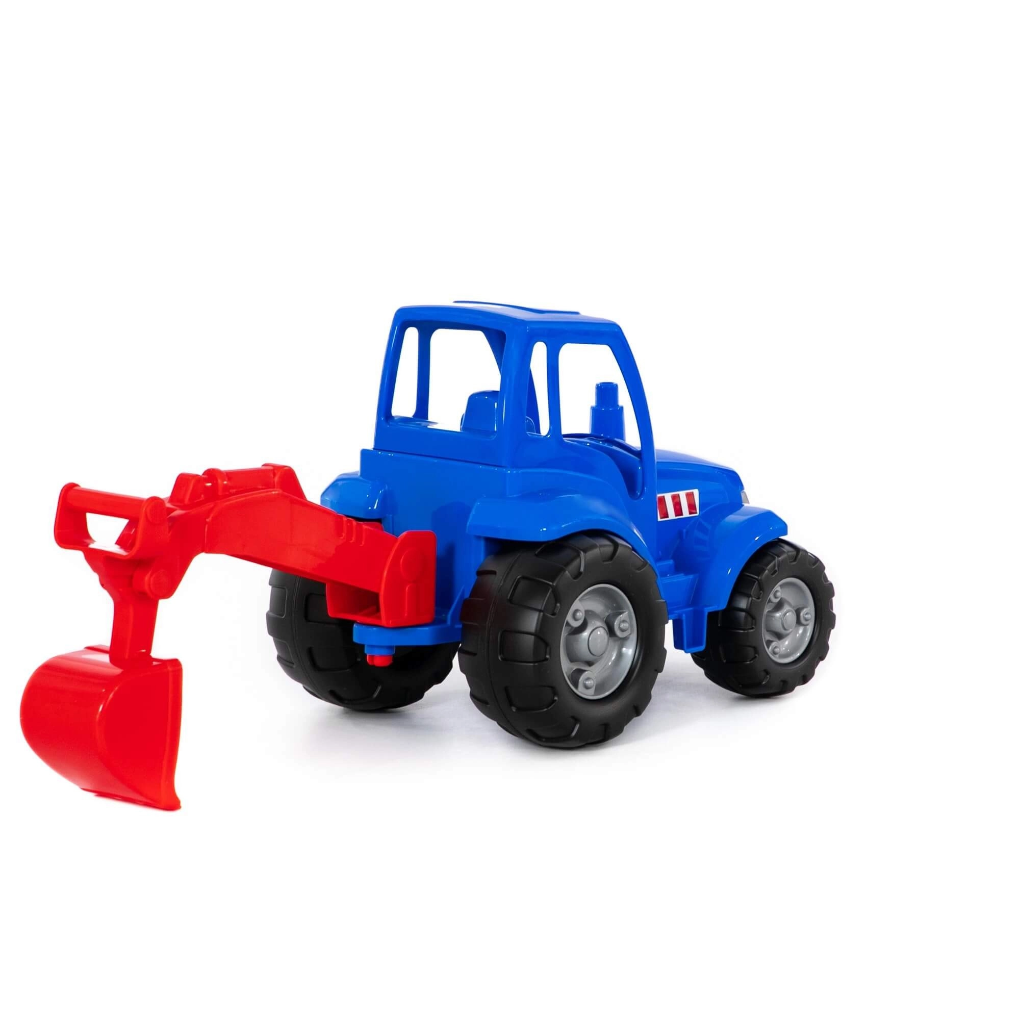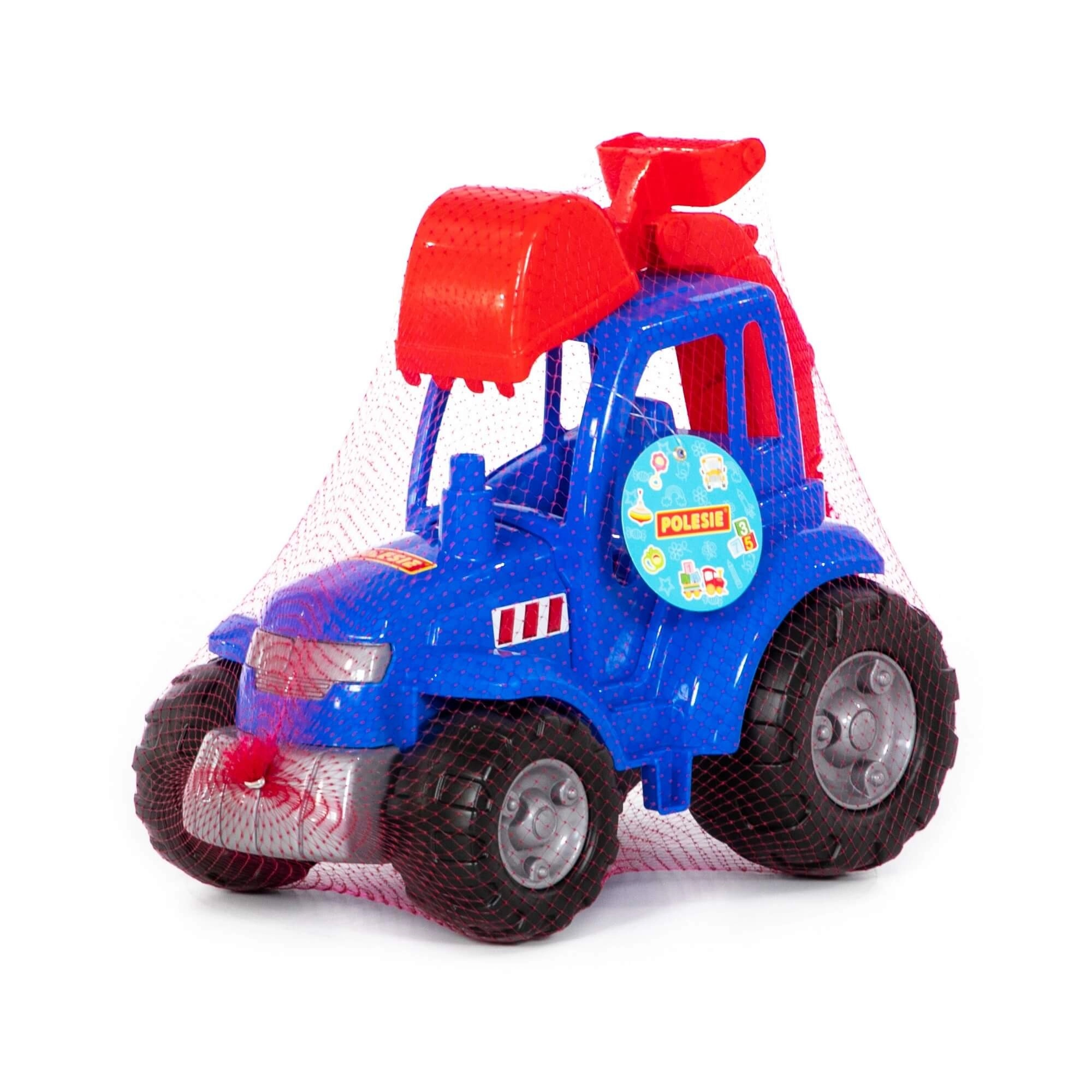 Traktor je izdelan iz trpežne, odporne plastike, ki prenese igro v peskovniku in doma, obenem pa se zlahka čisti.