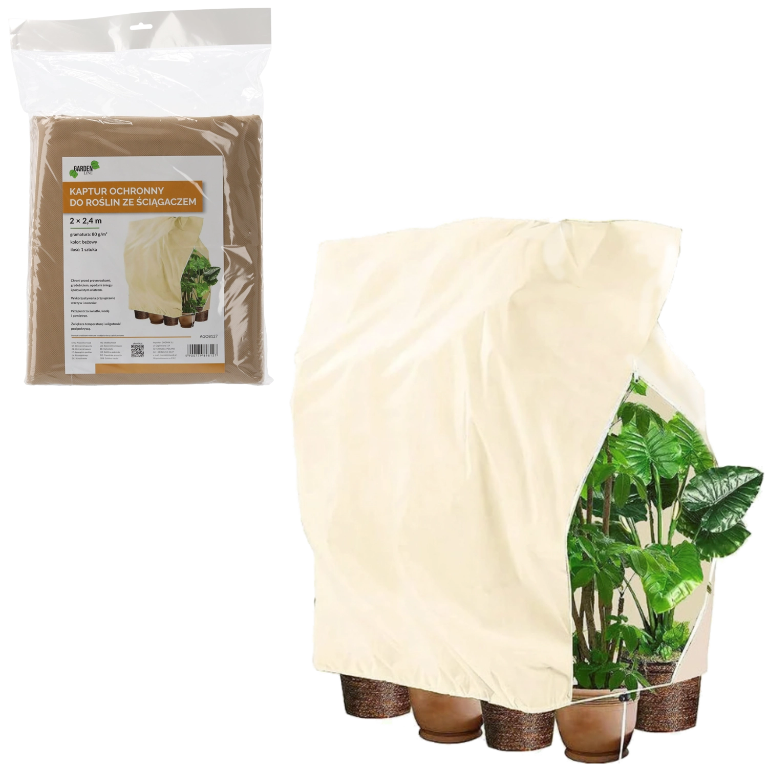 Praktičen zaščitni pokrov iz agrofibre z gramatura 80 g/m² zanesljivo ščiti občutljive rastline pred mrazom, vetrom in izsuševanjem. Zahvaljujoč integriranemu zateznemu vrvnemu robu trdno drži pri tleh in preprečuje podvetravanje. Primeren za večkratno uporabo, v bež barvi in velikosti 2 × 2,4 m.
