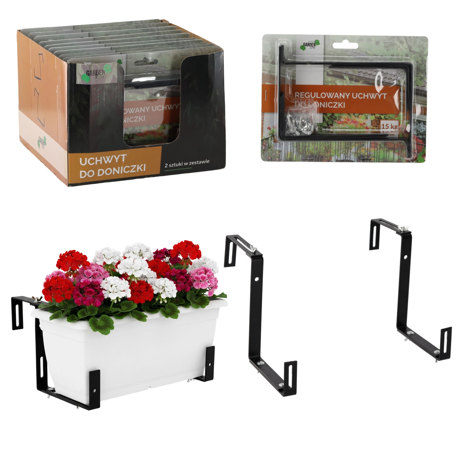 Praktičen komplet dveh nastavljivih nosilcev za cvetlične lonce za varno pritrditev na balkon, teraso ali ograjo. Zahvaljujoč univerzalni širini pritrditve se zlahka prilagodijo različnim tipom ograj. Trdna kovinska konstrukcija in premišljena zasnova zagotavljata stabilnost, dolgo življenjsko dobo in eleganten videz vašega zunanjega prostora. Enostavna montaža brez posebnega orodja.