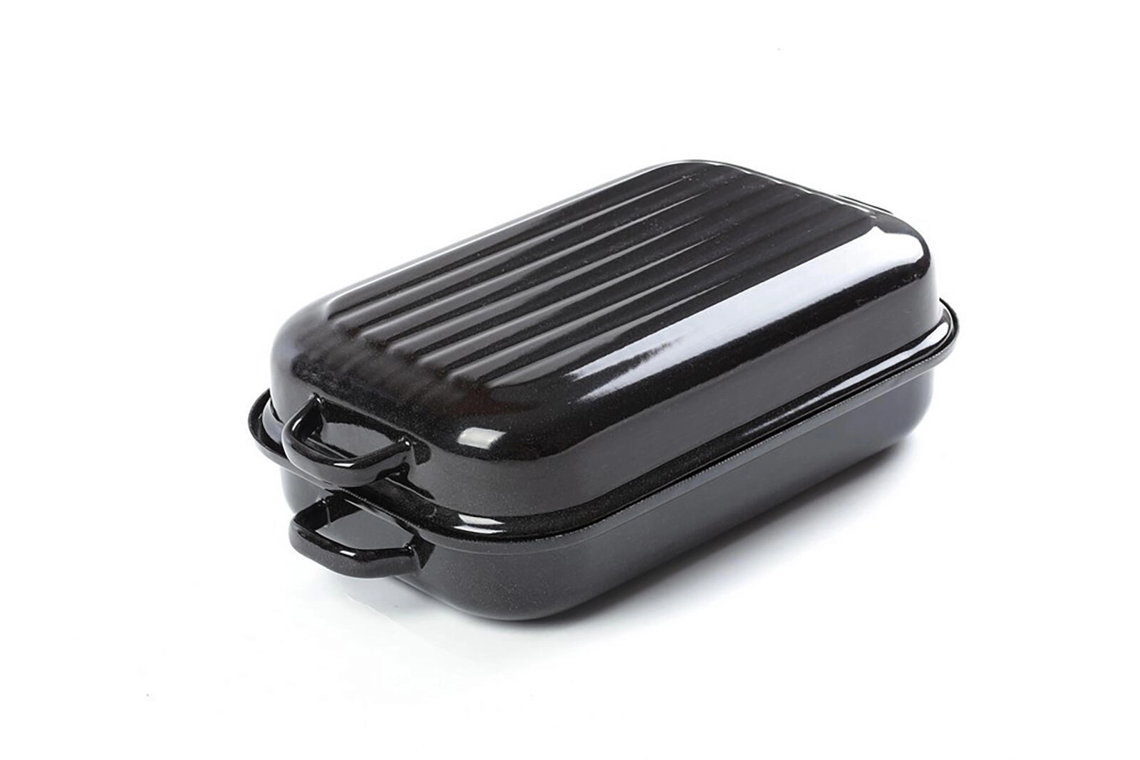 Ta robusten pekač iz emajliranega jekla z višino 12,5 cm in debelino pločevine 1,2 mm obvlada vsakodnevno peko in praznične gostije. Rebrasto (valovito) dno bolje odvaja maščobo, spodbuja kroženje toplote ter prispeva k hrustljavi skorjici in sočni sredici mesa.