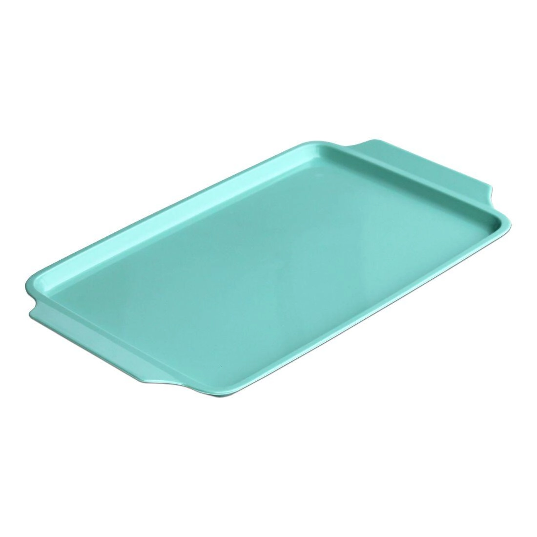 Univerzalen plastični pladenj velikosti 30 × 18 cm je idealen za vsakodnevno uporabo v kuhinji, jedilnici in pisarni. Odlično služi pri serviranju pijač, obloženih kruhkov ali sladic, povišan rob pa pomaga preprečevati neželena razlitja.