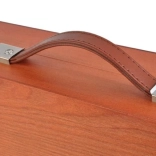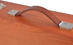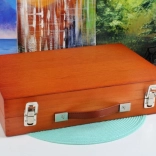 Stabilen in stilski kovček z površino iz lakiranega lesa zagotavlja prostor za varno shranjevanje vseh pripomočkov.