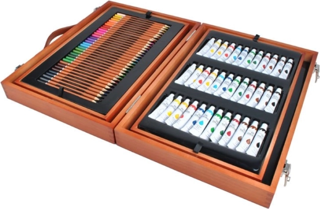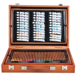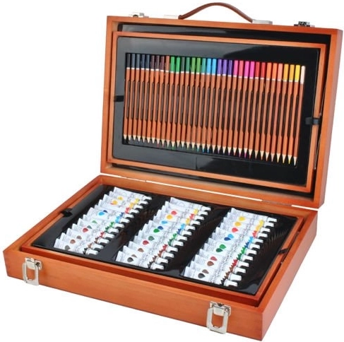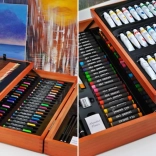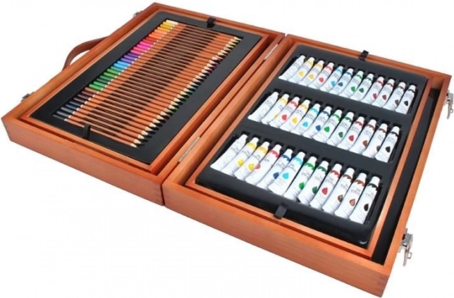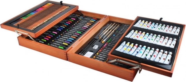 Velik komplet za risanje s 177 kosi, ki je idealen za male in velike umetnike. Zahvaljujoč trdnemu lesenemu kovčku z zaponkami vse ostane na svojem mestu, kar zagotavlja varen prevoz.