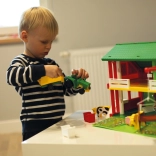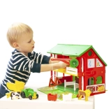 Igralni set Play House kmetija popelje otroke v realistično okolje posestva. Dvonadstropna hiša višine približno 37 cm ponuja veliko interaktivnih elementov: odpirajoča se vrata, dvigalo, žerjav in rampe. Del kompleta sta tudi traktor s prikolico, figurice domačih živali (konj, petelin, kokoš, krava, prašič, ovca) ter nalepke za dodelavo podrobnosti.