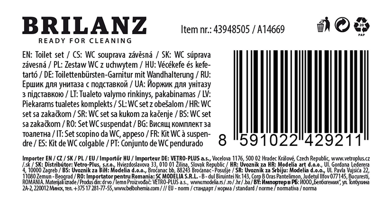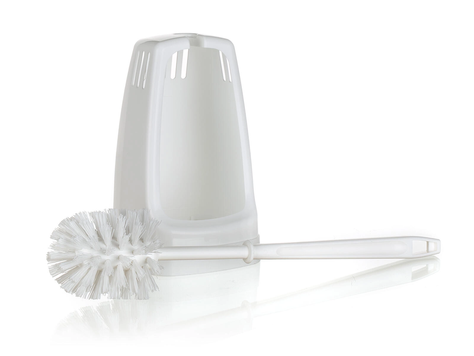Ta bel WC komplet združuje preprost dizajn in funkcionalnost. Kvadratno plastično držalo je stabilno in diskretno, krtača s sintetičnimi vlakni učinkovito odstranjuje nečistoče ter olajša redno vzdrževanje stranišča.