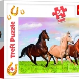 Odkrijte zabavne minipuzzle z motivom konjev, ki bodo razveselile male ljubitelje živali. Set vsebuje 54 koščkov in po sestavljanju nastane slika velikosti 20 × 13 cm. Zaradi kompaktne škatlice 9 × 6,5 × 4 cm so idealne za na pot in za otroke od 4 let.