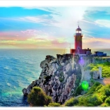 Motiv svetilnika na pečini se odlično ujema z morsko scenografijo in ustvarja osupljivo vizualno doživetje.