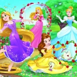 Uživajte v sestavljanju sestavljanke z motivom priljubljenih Disney princes. Ta sestavljanka vsebuje 30 kosov in po sestavljanju ustvari sliko velikosti 27 × 20 cm.