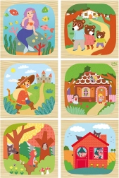 Lesene kocke Vilac Zgodbe otrokom prinašajo veselje do odkrivanja in sestavljanja. Iz devetih trdnih kock lahko sestavite šest različnih pravljičnih motivov, ki razvijajo domišljijo in učijo otroke osredotočanja. Zahvaljujoč trdnemu lesu in kakovostnemu tisku je igrača trpežna in primerna za vsakodnevno igro.