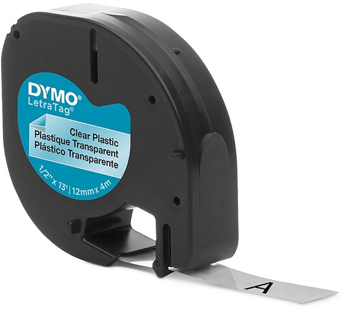 Univerzalni označevalni trak DYMO LetraTag širine 12 mm in dolžine 4 m iz trpežne plastike. Ponuja prozorno izvedbo za čisto in nevsiljivo označevanje ter je združljiv z vsemi označevalniki LetraTag. Trak se zlahka reže in ločuje, dobavljen je v hitro zamenljivih kasetah in predstavlja ekonomsko rešitev za označevanje skoraj česarkoli v gospodinjstvu in pisarni.
