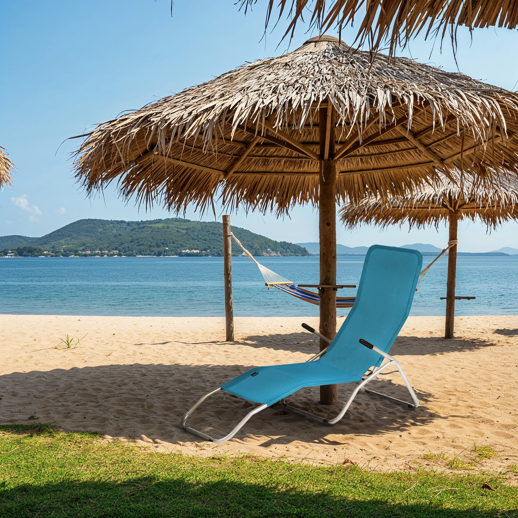 Model je v celoti zložljiv in pripravljen za takojšnjo uporabo brez montaže. Nizka teža 5 kg olajša prenašanje in prevoz v avtomobilu. Idealen za vrt, teraso, ob bazenu, za kampiranje in plažo.