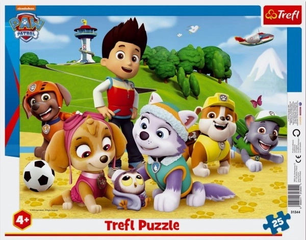 Okvirne puzzle z motivom TAČKE NA PATRULJI – Na sledi so odlična izbira za prve sestavljanke. Deli so pregledno vstavljenji v grafično usklajen okvir, ki pomaga otrokom ohranjati obliko slike in olajša sestavljanje.