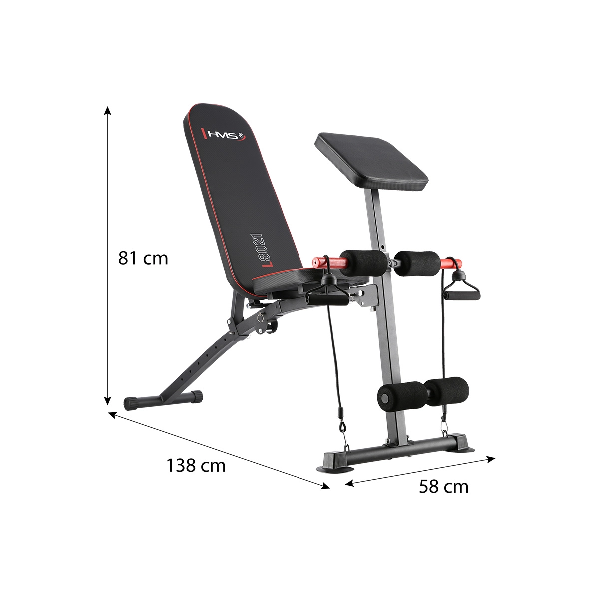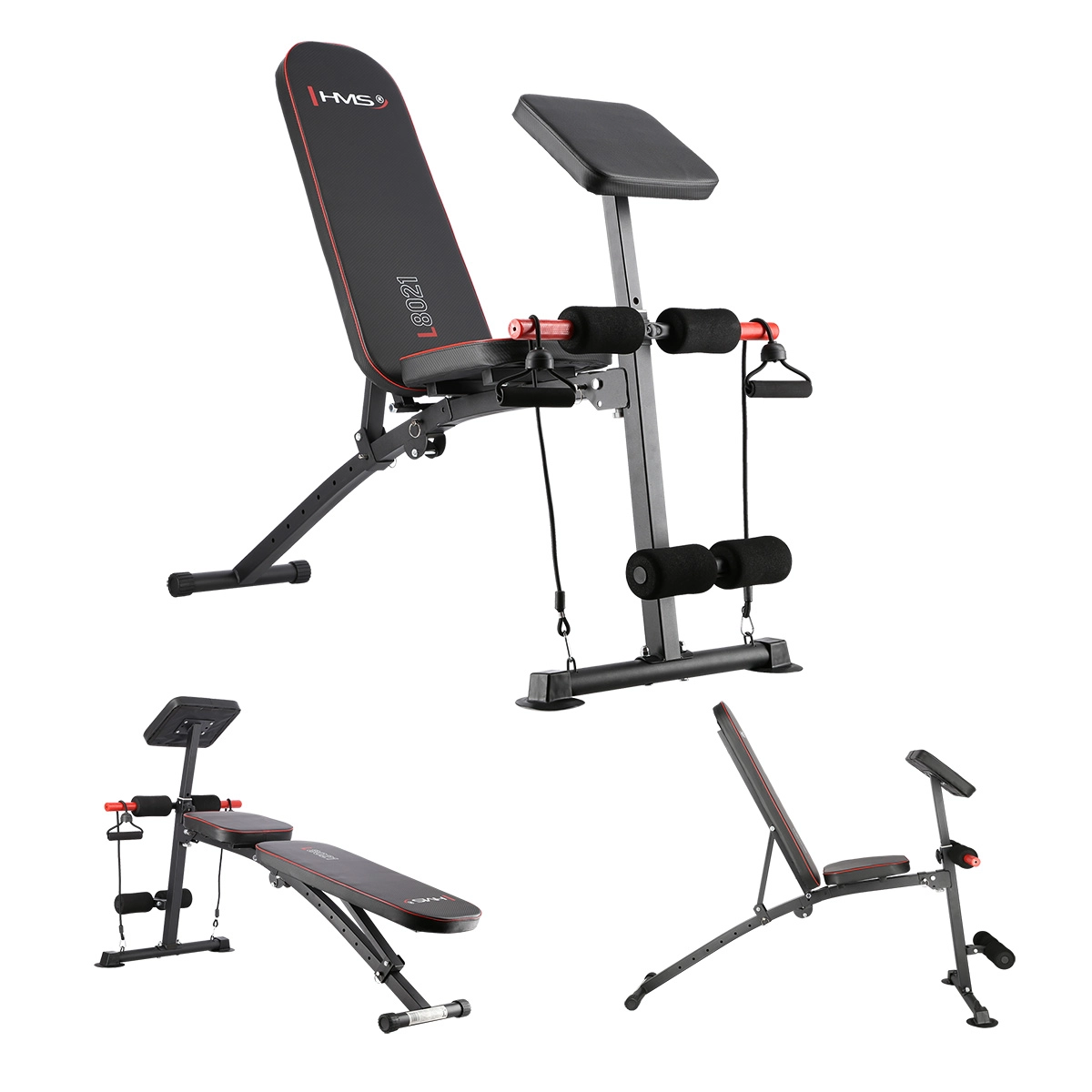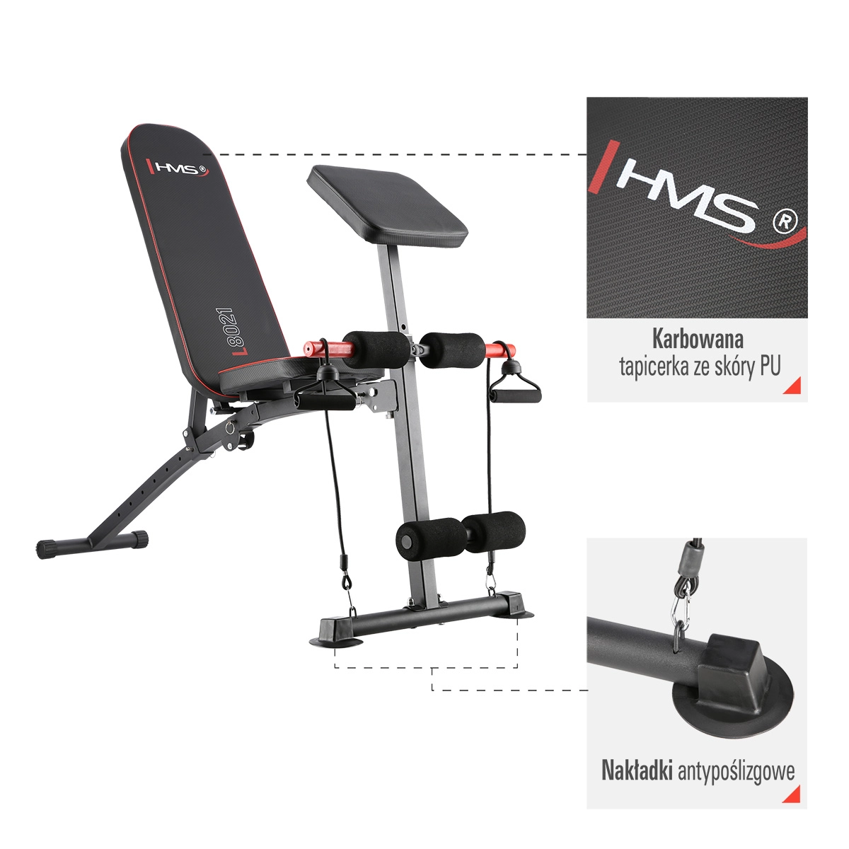 HMS L8021 je premišljena nastavljiva klop za učinkovito domačo vadbo bicepsov, tricepsov, prsnih mišic, trebuha, hrbta, ramen in nog. Zahvaljujoč širokemu razponu nastavitev naslona od -20° do 90° klop enostavno prilagodite klasičnim bench vajam, potiskom, različnim vrstam pritegov ter trebušnim vajam. Oporni naslon za biceps, nastavljiv v 2 položaja, omogoča natančno izolacijo bicepsov.