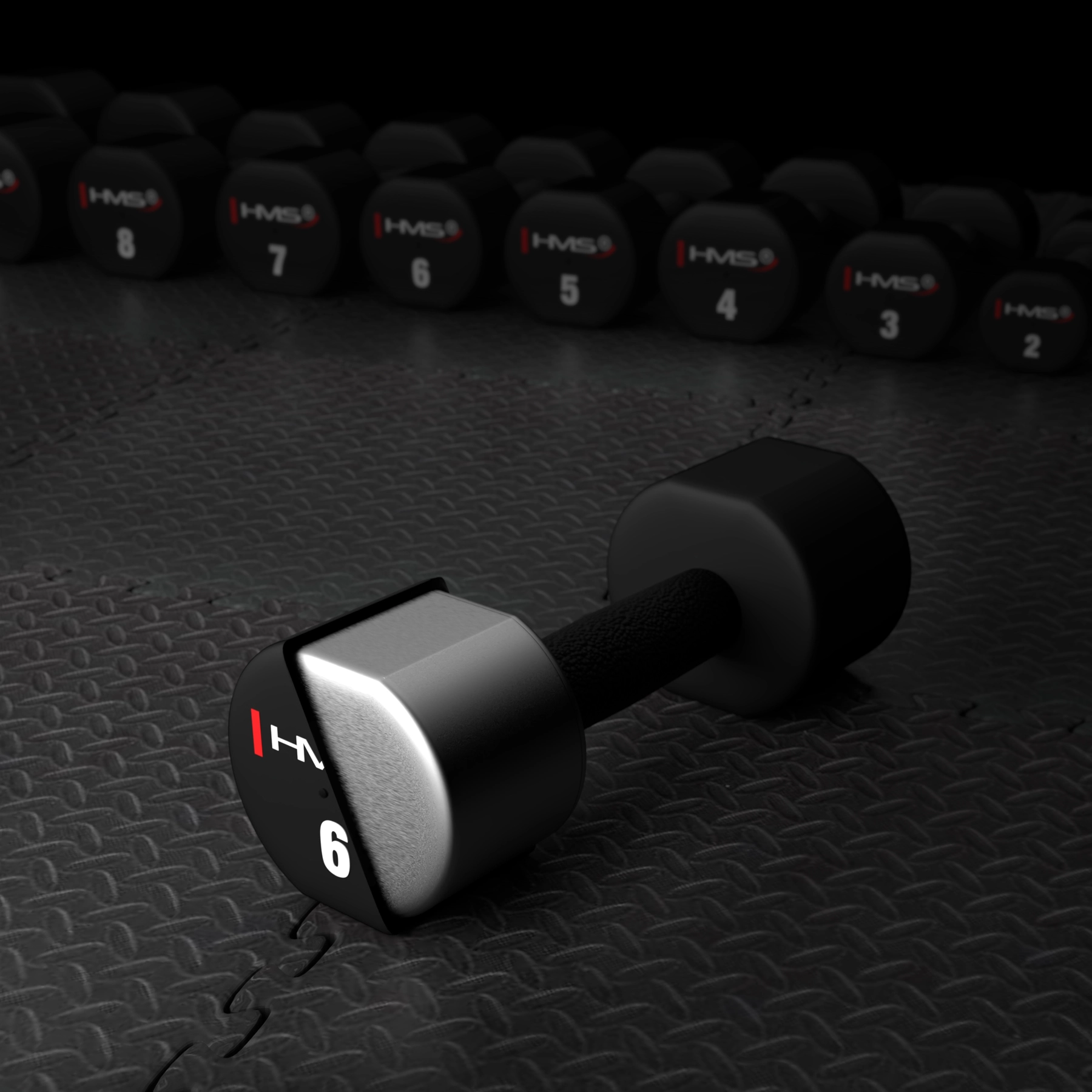Ročke HMS HPT06 združujejo trdno jekleno jedro in termoplastični poliuretan (TPU), ki je prožen, odporen na udarce in brez vonja. Zahvaljujoč TPU površini ščitijo tla pred poškodbami in dušijo hrup pri odlaganju uteži. Jasno označena teža pospeši izbiro prave obremenitve med treningom.