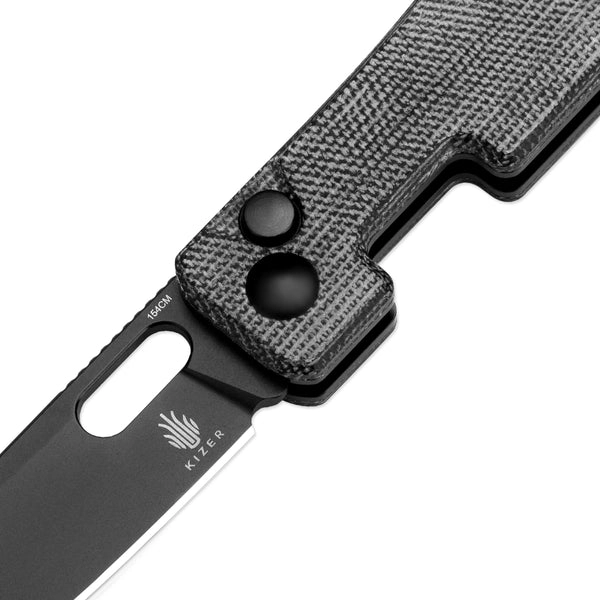 Žepni nož Kizer Banish je kompakten EDC pomočnik za vsak dan, pohodništvo in kampiranje. Ponuja rezilo iz jekla 154CM s črno površinsko obdelavo, varen button lock in hitro enoročno odpiranje prek flipperja ali ovalne odprtine. Teksturiran ročaj iz Micarte zagotavlja zanesljiv oprijem, globok žepni sponki pa udobno nošenje.