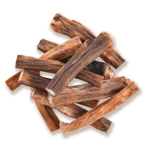 Zaradi trše strukture sodi med bolj obstojne priboljške – pes ga bo užival dlje, okrepil žvečilne mišice in hkrati naravno odstranjeval zobne obloge ter masiral dlesni, s čimer se preprečuje nastanek zobnega kamna. Podpira tudi peristaltiko črevesja in pomaga uravnavati želodčne sokove.
