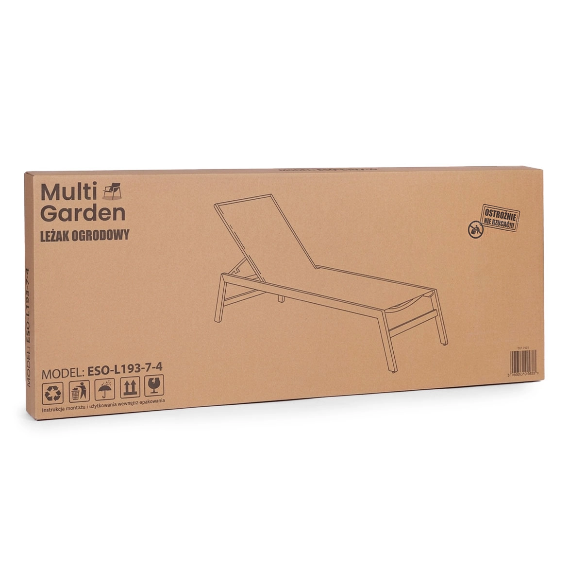 Eleganten vrtni ležalnik MultiGarden ponuja 4 stopnje nastavitve naslona, možnost popolnoma ravnega položaja in trdno jekleno konstrukcijo z zračno tekstilensko mrežico. Zahvaljujoč nedrslim zaključkom je stabilen in odporen na vremenske razmere, idealen za teraso, balkon in ob bazenu. Nosilnost 120 kg.