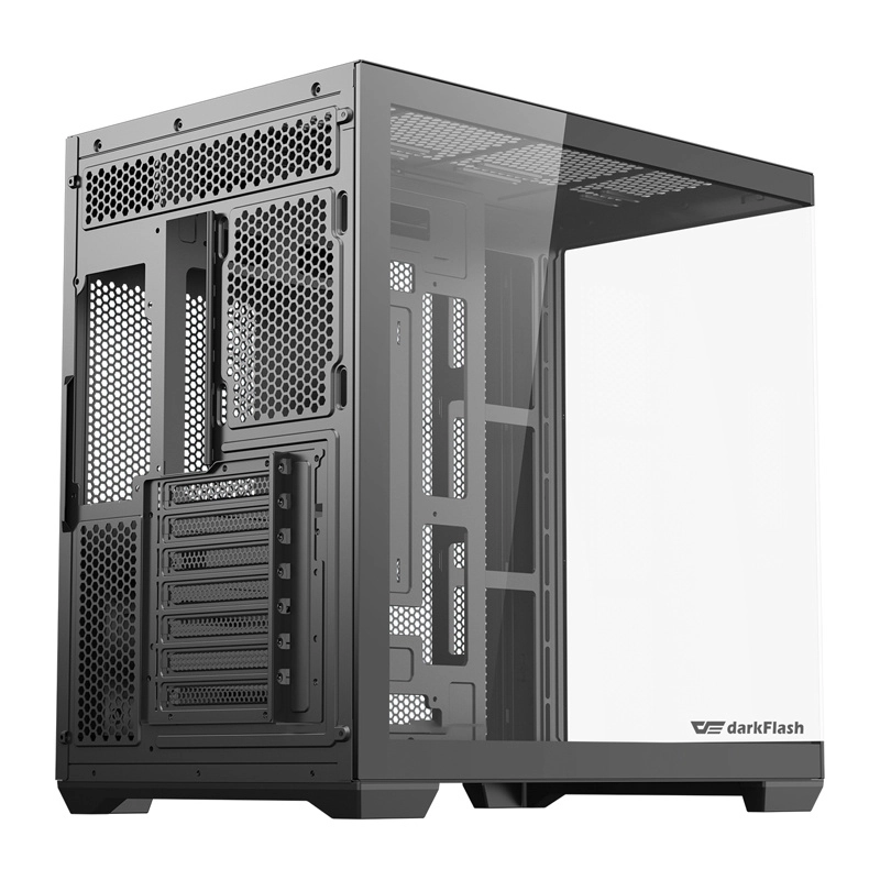 DarkFlash C280 je midi tower za zahtevne igralce in ustvarjalce, ki združuje moderen videz s premišljeno funkcionalnostjo. Zahvaljujoč 270° panoramski rešitvi brez kotnega profila in panelom iz kaljenega stekla dobite popolnoma čist pogled na komponente in RGB osvetlitev. Podpora dolgih grafičnih kartic do 420 mm, hladilnikov CPU do 155 mm ter plošč E-ATX do ITX prinaša svobodo pri sestavi zmogljivega PC-ja.