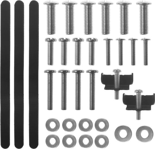 Nastavljivi VESA nosilci z več montažnimi odprtinami ter bogat komplet vijakov, distančnikov in trakov za kable olajšajo namestitev.