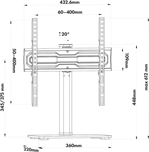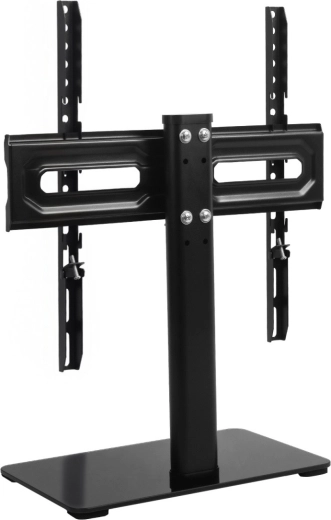 Namizno stojalo za TV združuje čist dizajn s trdno konstrukcijo, zato bo vaš televizor varno stal na kateri koli TV omarici. Višinsko/kotno nastavljiv nosilec z VESA razmiki zagotavlja enostavno namestitev in odlično prilagoditev različnim modelom televizorjev znamk, kot so SONY, LG, SAMSUNG, PHILIPS, SHARP, PANASONIC, TOSHIBA, TCL, XIAOMI, JVC in druge.
