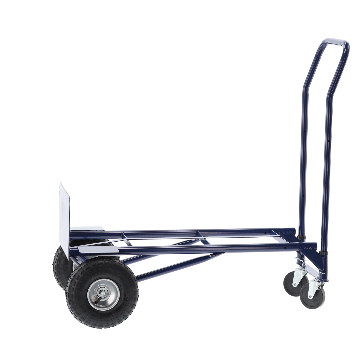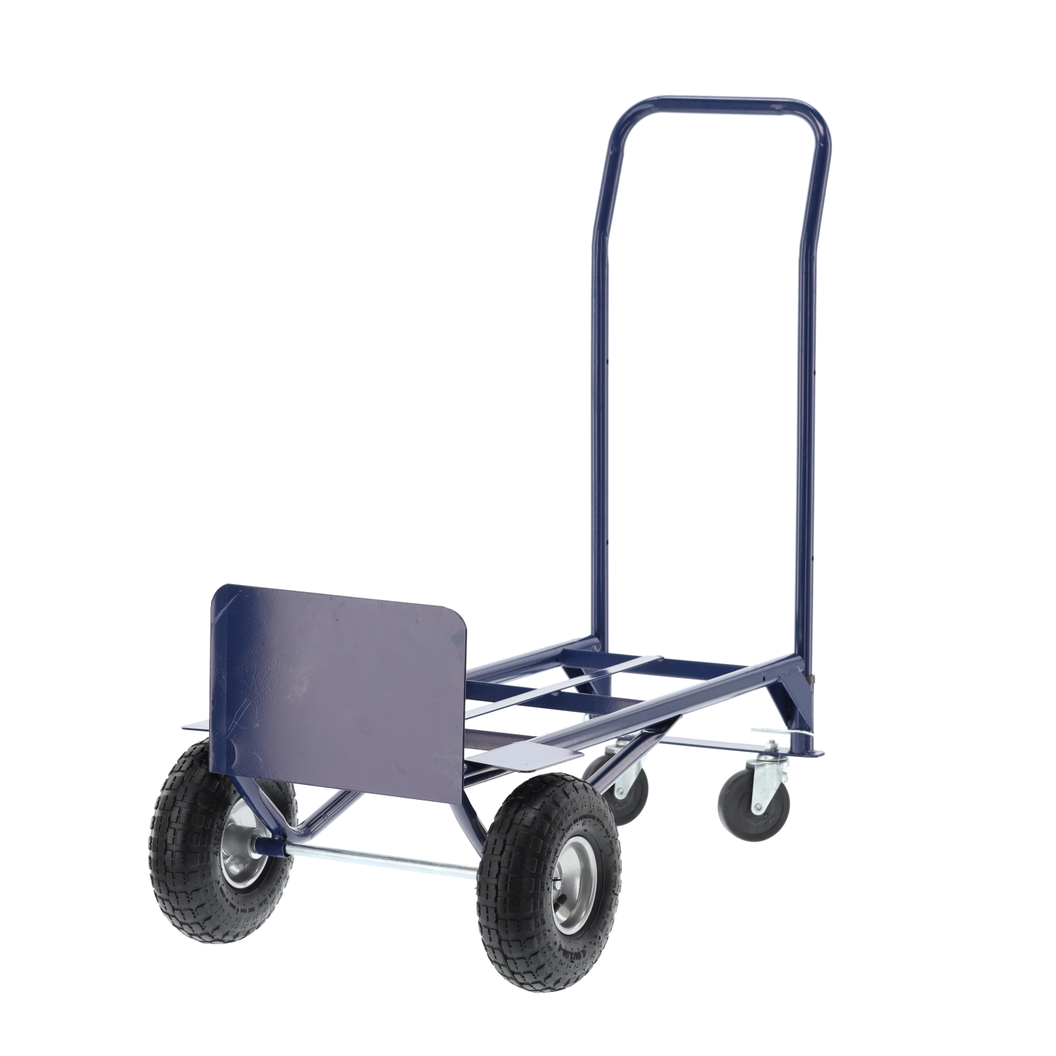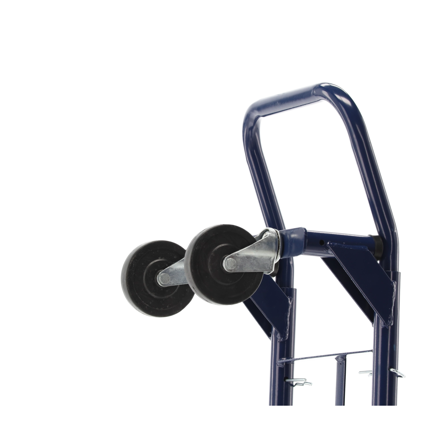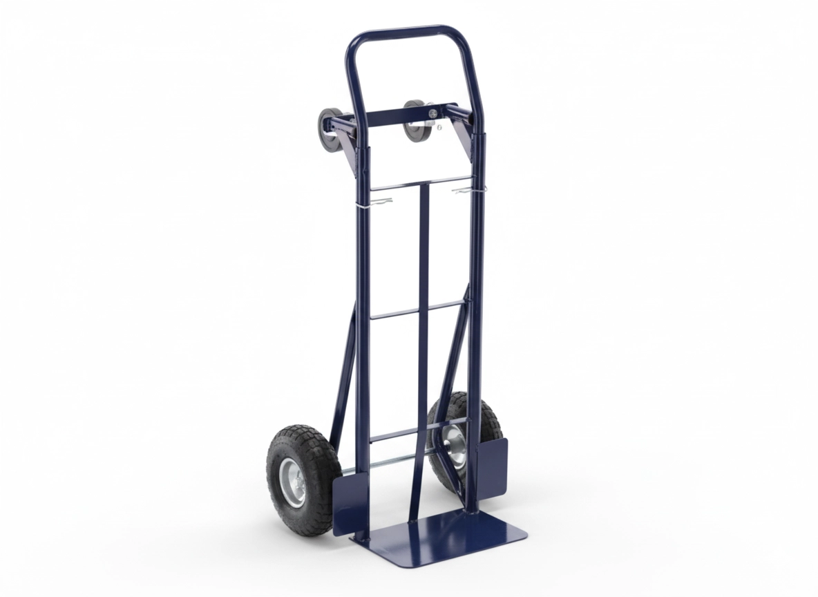 Praktičen pomočnik za skladišča, delavnice in gospodinjstva. Trden jeklen okvir, kakovostna gumijasta/pnevmatska kolesa in enostavna preureditev med dvema načinoma prihranijo čas in trud. Voziček je stabilen, enostaven za upravljanje in zasnovan za pogosto uporabo.