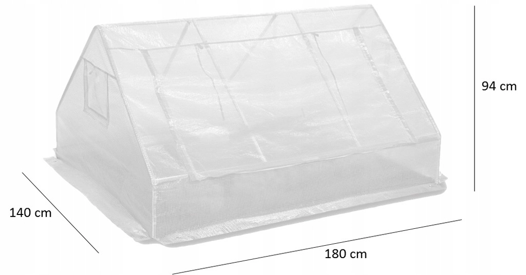 Ojačan PE ovoj 130 g/m² z integrirano mrežico prepušča svetlobo, zadržuje toploto in ima zložljivo okno za uravnavanje pretoka zraka in vlage.