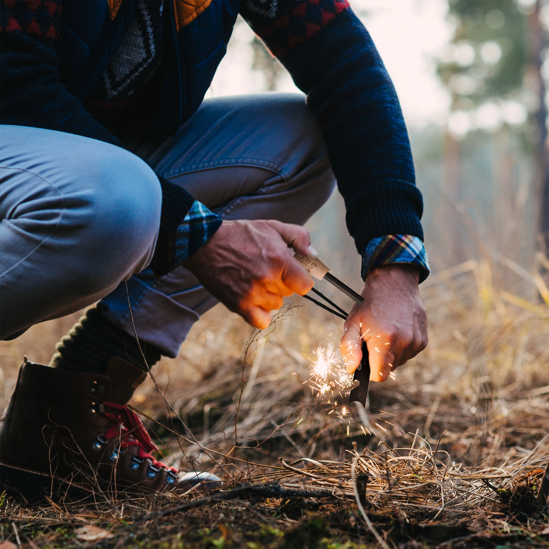 Priloženo je večnamensko jekleno strgalo z merilom, nazobčanim robom in odpiračem za steklenice. Praktične mere omogočajo, da imate kresilo vedno pri roki – v žepu, na zapestju ali pritrjeno na nahrbtnik. Pred prvo uporabo je dovolj, da z palice odstranite zaščitni sloj za maksimalen učinek iskrenja.