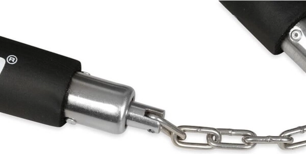 Ležajno pritrditev jeklenih valjčkov v kombinaciji z varjeno verigo ponuja gladko delovanje in dolgo življenjsko dobo tudi pri intenzivni uporabi. Uravnotežene mere in nizka teža 280 g olajšajo rokovanje, hitre prehode ter natančno izvedbo udarcev ali blokad.