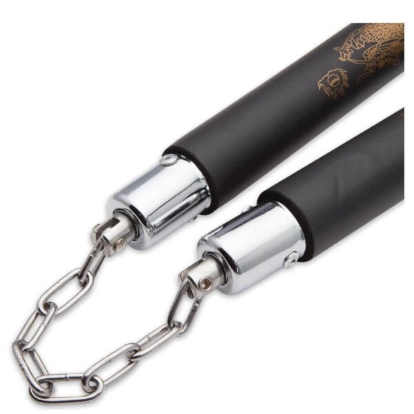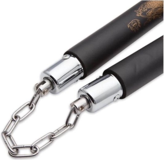 Trening nunčaku DBX Bushido z mehkimi penastimi ročaji so idealni za varnejši trening tehnik borilnih veščin. Debela plast pene zmanjšuje tveganje za poškodbe, medtem ko jekleni valjčki z ležaji in varjena veriga zagotavljajo gladko, vzdržljivo in zanesljivo gibanje.