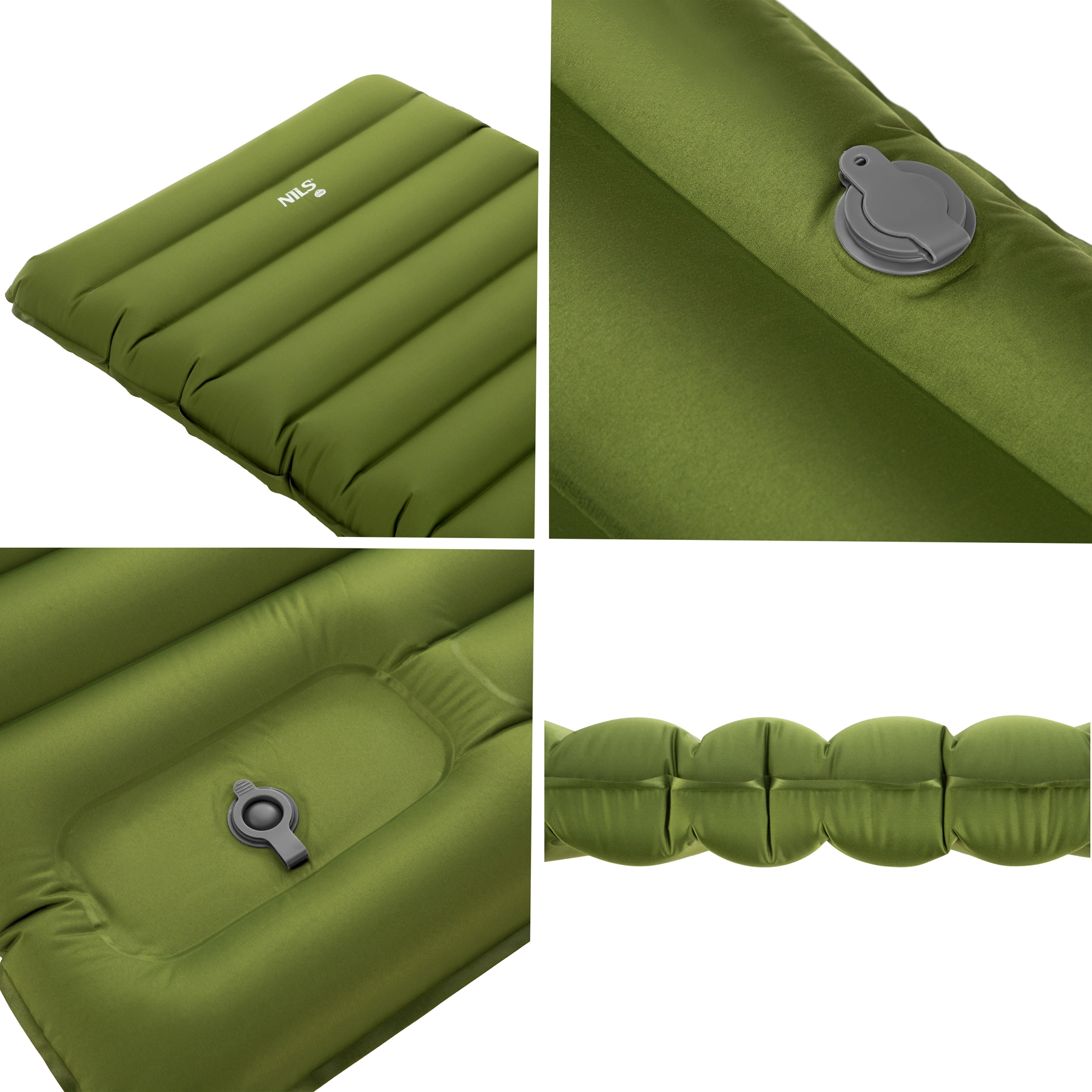 Uživajte v udobnem počitku pri kampiranju, pohodništvu ali v šotoru. Podloga NILS Camp NC4402 omogoča hitro napihovanje zahvaljujoč vgrajeni nožni/ročni črpalki in možnosti priključitve zunanje črpalke preko ventila. Po napihovanju nudi 10 cm visoko ležišče za maksimalno udobje in učinkovito izolacijo od hladnih tal.