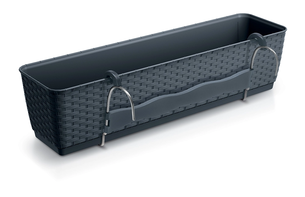 Oplemenitite balkon, teraso ali okensko polico s praktičnim koritnikom Ratolla PW, katerega struktura verno posnema ratan. Vgrajene kljuke omogočajo hitro in varno obešanje na ograjo, s čimer prihranite prostor, rastline pa lepo izstopajo. Zahvaljujoč zbirnemu podstavku je nega cvetja udobna, zalivanje pa učinkovito.
