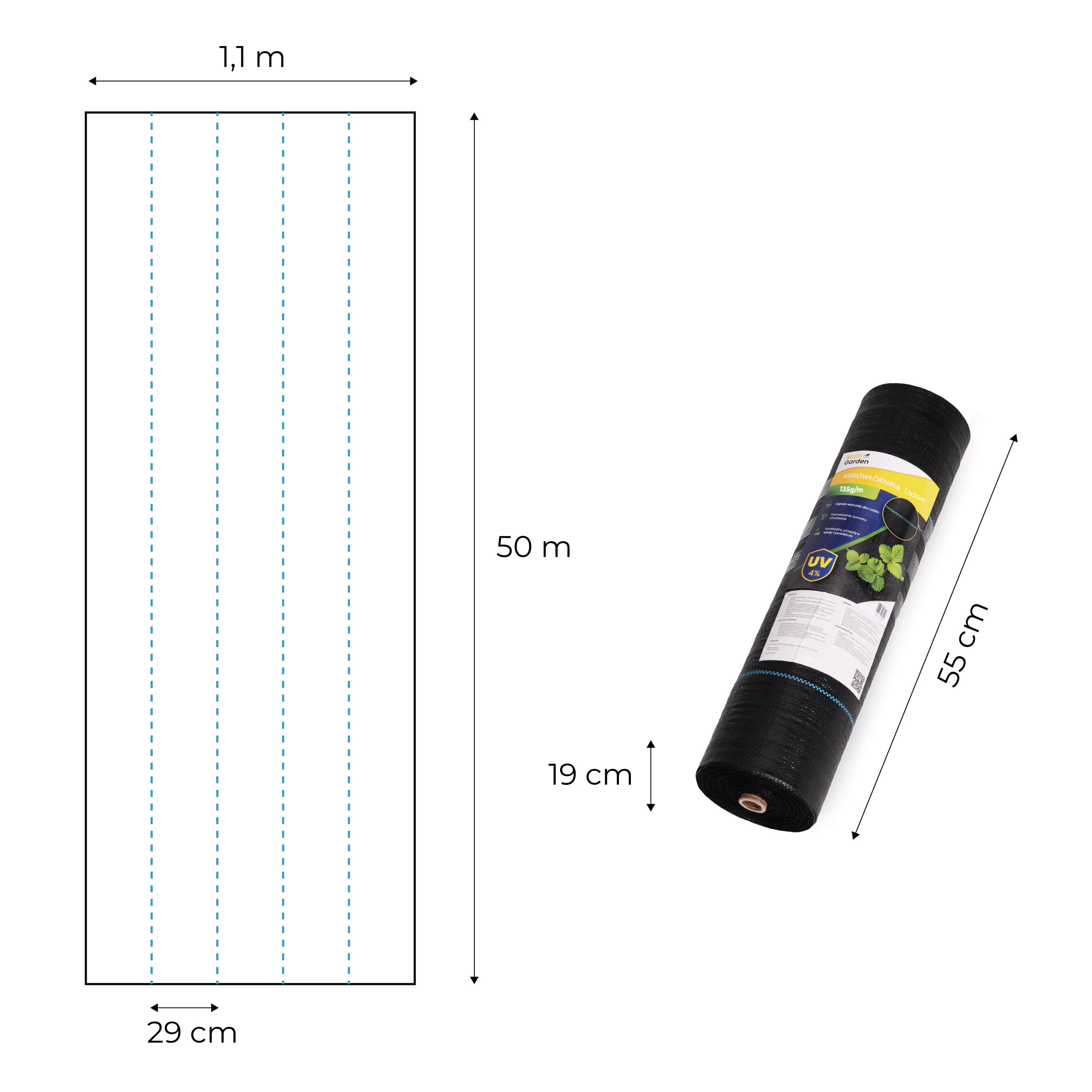 Ohranite vrt čist in brez kemije. Ta profesionalni zastirni agrotekstil z gostim tkanjem blokira svetlobo in tako preprečuje kalitev plevela, hkrati pa omogoča prehod vode in zraka do korenin. Modre vodilne linije na 29 cm olajšajo natančno razporeditev zasaditev za estetski in urejen rezultat.