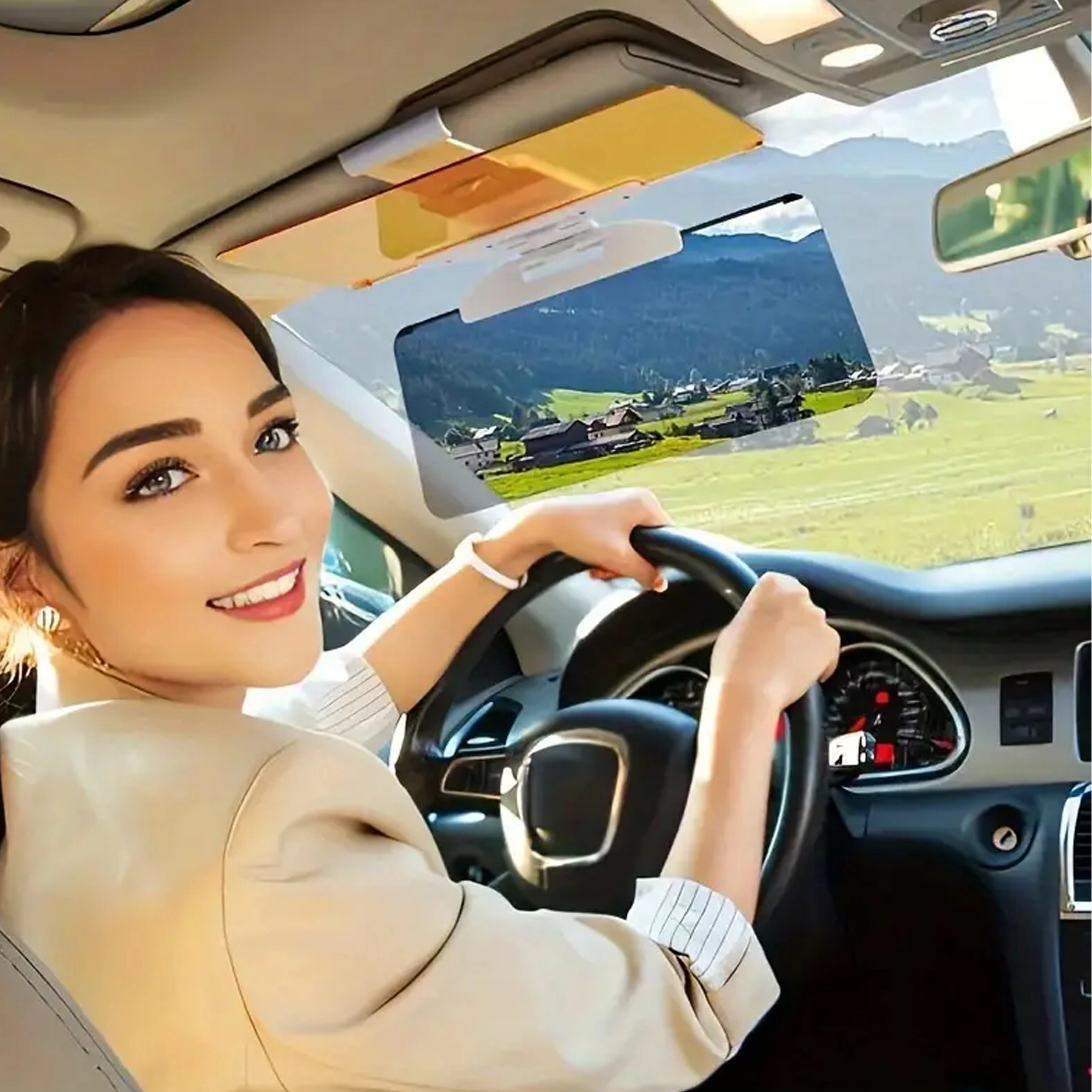Ta pripenjalni avtomobilski senčnik združuje dva preklopna filtra za različne svetlobne pogoje. Sivi filter zmanjšuje intenzivnost sonca in odseve z armaturne plošče, rumeni filter poveča kontrast in ostrino vida pri nočni vožnji, megli ali dežju. Zahvaljujoč enostavni namestitvi na originalni sončni senčnik je pripravljen v hipu.