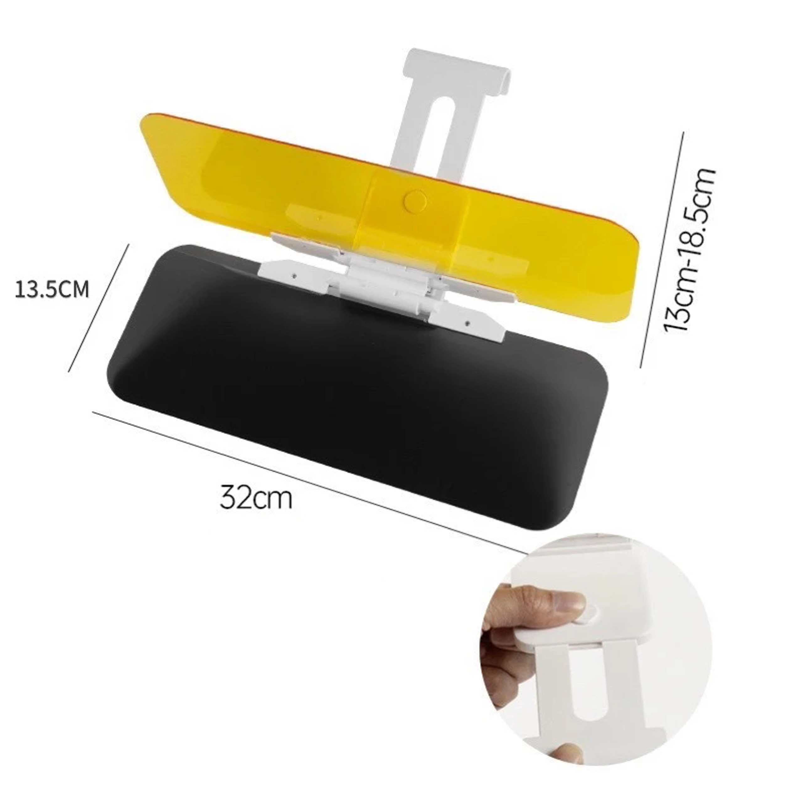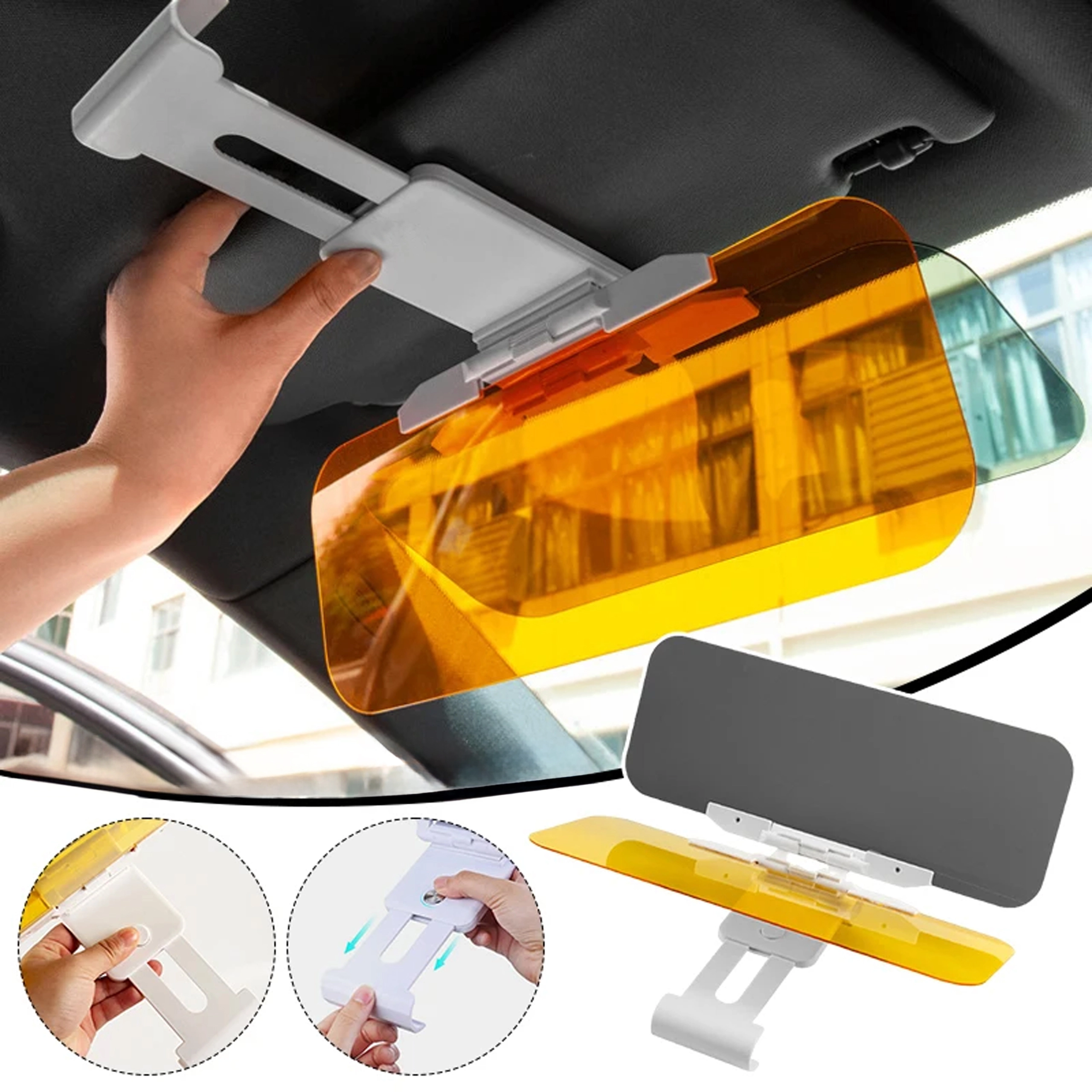 Praktičen univerzalen senčnik proti bleščanju za avto s paneloma 2v1 za dan in noč poveča varnost in udobje za volanom. Sivi panel duši oster sončni sij podnevi, rumeni panel zmanjšuje bleščanje žarometov ponoči. Enostavno pripenjanje s sponko na obstoječi senčnik, hitro preklapljanje z enim gibom in izboljšana vidljivost brez utrujenosti oči med vožnjo.