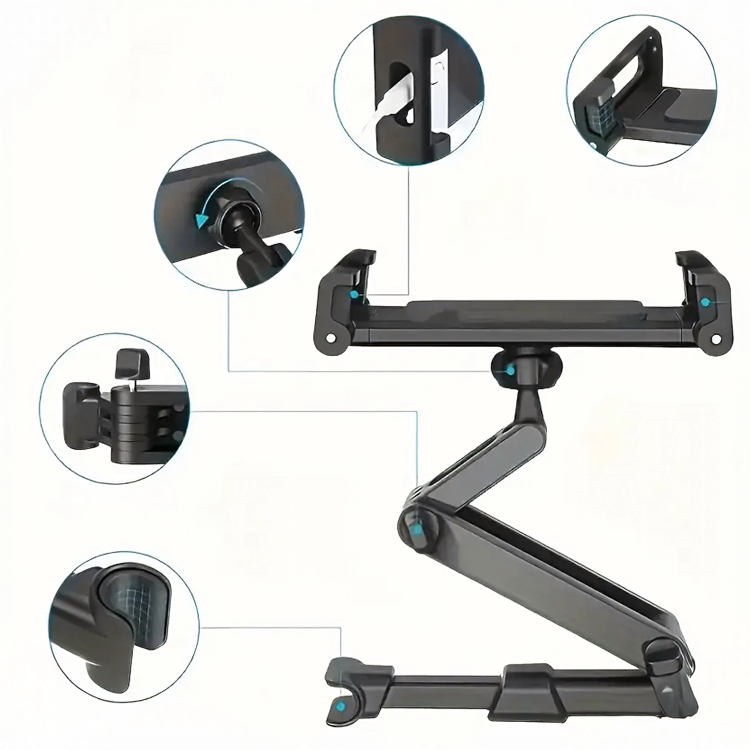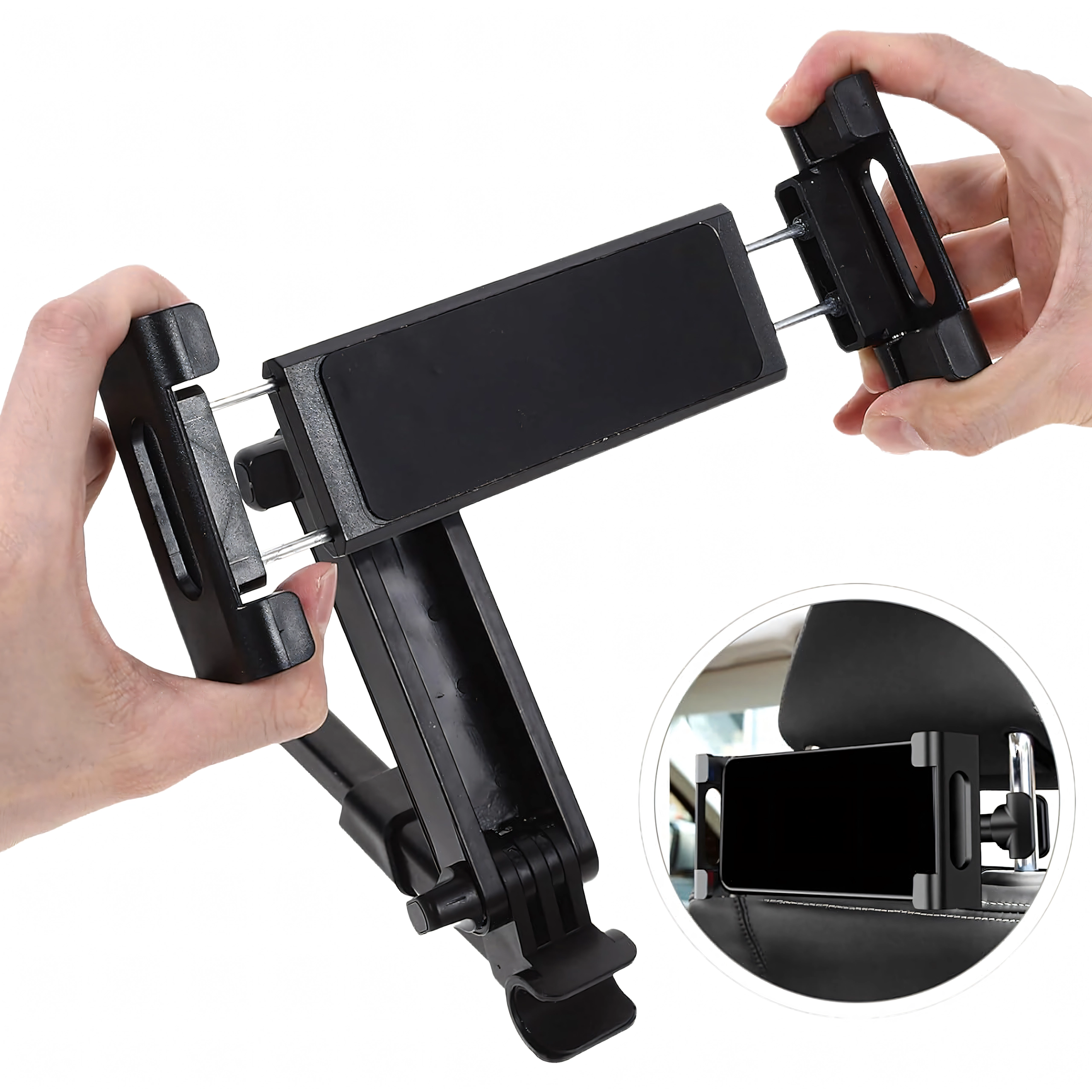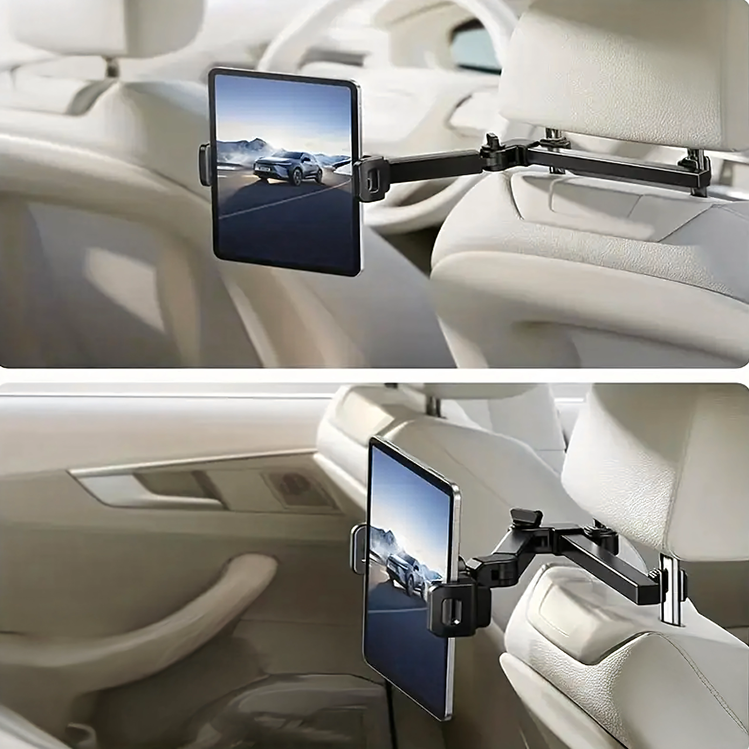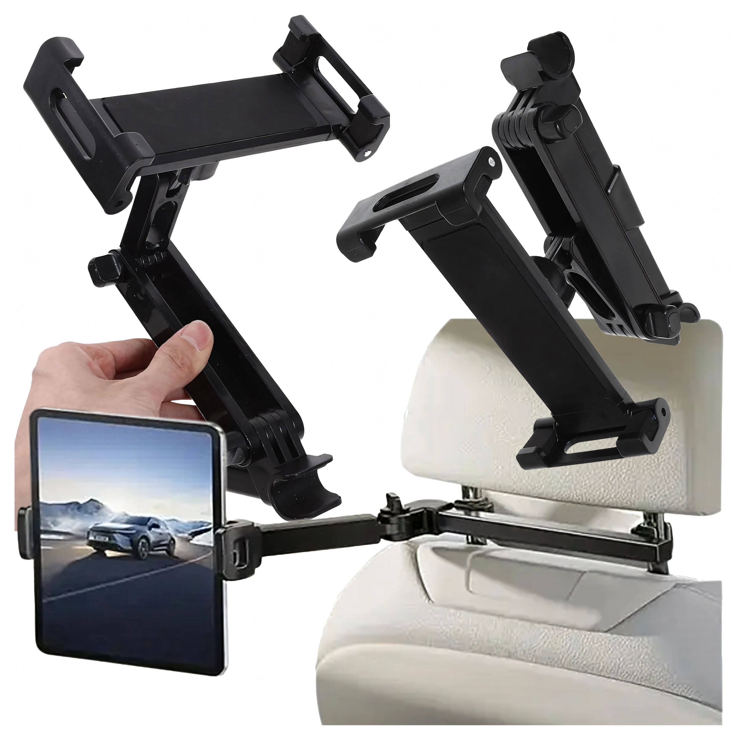 Univerzalni nosilec za vzglavnik spremeni zadnje sedeže v multimedijski kotiček. Zahvaljujoč členkasti zasnovi in krogličnemu zglobu ponuja vrtenje za 360°, široko združljivost s telefoni in tablicami ter trden oprijem brez tresenja – idealno za filme, igre in učenje na poti.