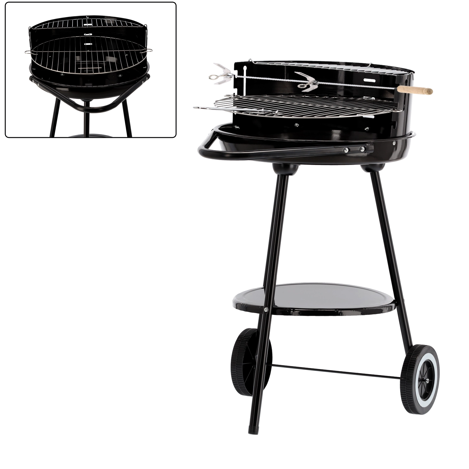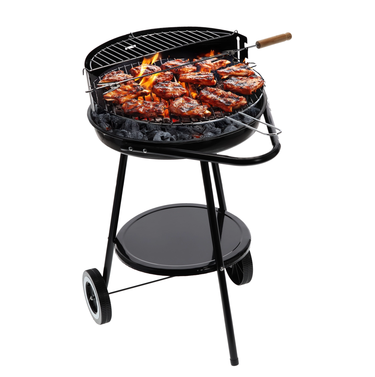 Klasičen vrtni ogleni žar s kolesi za enostavno premikanje je idealna izbira za družinsko peko na žaru. Ponuja stabilno kurišče, veterno zaščito in kromirano rešetko z dodatno zgornjo rešetko za udobno pogrevanje jedi. Zahvaljujoč praktični mobilnosti in preprostemu upravljanju boste pripravili sočne zrezke, klobase in zelenjavo kadarkoli in kjerkoli.